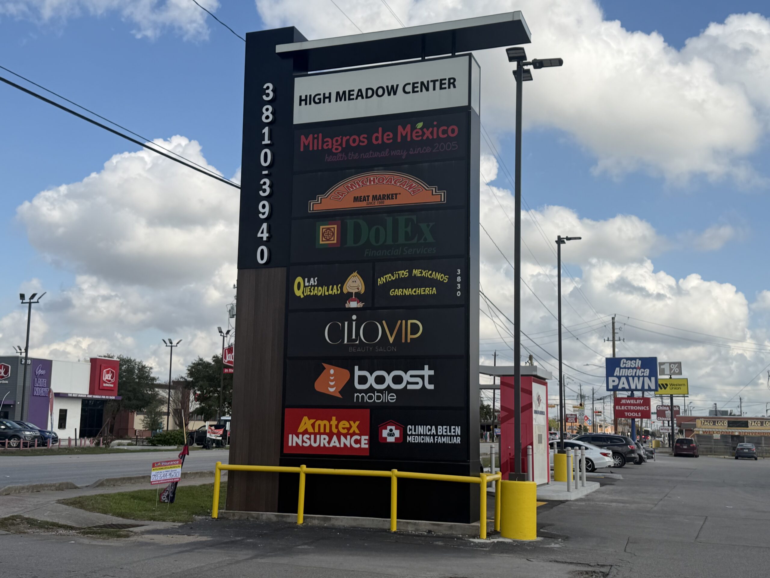This Strip Center is anchored by a medium-size La Michoacana Meat Market located at 3910 Aldine Mail Route Road, at the junction with John F Kennedy Blvd in Houston, Texas. Other tenants include Cash American Pawn, Spin Xpress, Family Dollar, Goodland Dentistry, Clinica Belen, 2 mobile device outlets, & a Little Caesars pizza store.